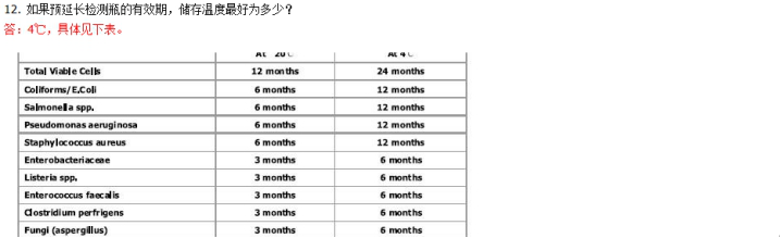 1. 微生物檢測(cè)瓶除可以檢測(cè)活菌外,死菌可以檢測(cè)么? 答:不能檢測(cè)死菌。 | 2. 微生物檢測(cè)瓶可以檢測(cè)厭氧菌么? 答:檢測(cè)瓶的檢測(cè)范圍即包括厭氧菌(亞硫酸鹽梭狀芽胞桿菌 Sulphite reducing Clostridia,產(chǎn)氣莢膜桿菌 Clostridium perfrigens),也包括需氧菌。 檢測(cè)不同種微類生物的檢測(cè)瓶中試劑不同。對(duì)于厭氧菌,我們有特殊的試劑,如檢測(cè)產(chǎn)氣莢膜桿菌 Clostridium perfrigens。 | 3. 檢測(cè)瓶的檢測(cè)原理都分別用到了哪些檢測(cè)方法? 答:培養(yǎng)皿法、酶法、免疫法、基因法。 | 4. 對(duì)于第 3 題,你能簡(jiǎn)要敘述這些方法的優(yōu)劣勢(shì)么? 答:與傳統(tǒng)的培養(yǎng)基法、膠體金、酶免法和 PCR 法不同,德國皇家微生物檢測(cè)儀是多種方法的集合。單獨(dú)使用一種檢測(cè)方法都有自己的缺點(diǎn):比如, PCR 法需要專業(yè)技術(shù)人員和昂貴設(shè)備; 培養(yǎng)基法操作復(fù)雜; 膠體金法靈敏度低; 酶免法特異性捕捉不充分。 德國皇家微生物檢測(cè)瓶快速檢測(cè)系列產(chǎn)品是以上多種方法的綜合運(yùn)用,吸收了每種方法的優(yōu)點(diǎn),彌補(bǔ)了各種方法的不足。 | 5. 用微生物檢測(cè)瓶進(jìn)行微生物檢測(cè)時(shí),步是先放樣本還是無菌水? 答:都可以。 | 6. 對(duì)樣本進(jìn)行微生物接種時(shí),需要在無菌環(huán)境下進(jìn)行么? 答:檢測(cè)瓶是通過捕捉特異性,結(jié)合多種檢測(cè)法進(jìn)行分析。無菌環(huán)境與否均可(臨檢的場(chǎng)所大都是非無菌環(huán)境)。 | 7. 檢測(cè)瓶可以檢測(cè)表面樣本和固態(tài)樣本么? 答:可以檢測(cè)固態(tài)、液態(tài)、表面樣本(用所配棉棒沾濕無菌水后涂抹表面)。紙漿等膏狀、糊狀、粘稠狀昂本都可以檢測(cè)。 | 8. 檢測(cè)瓶在檢測(cè)固態(tài)樣本時(shí)需要對(duì)進(jìn)行研磨、稀釋等前處理過程么? 答:直接將樣本放入檢測(cè)瓶,無需任何前處理。 | 9. 每次檢測(cè)的無菌水用量是多少? 答:一般是 11ml。如果是檢測(cè)液態(tài)樣本或水樣本,建議加樣 1ml,加無菌水 10ml。 | 10. 放入樣本和無菌水后,“搖勻使其充分溶解和混合”這一操作步驟,無論定性分析還是定量分析,都是必要的步驟么? 答:是的,搖勻無論是定性還是定量分析都是必要步驟。 | 11. 不同的微生物對(duì)應(yīng)的孵育溫度是一樣的么?請(qǐng)舉例說明。 答:不一樣。37 攝氏度居多:活菌總數(shù)、沙門氏菌、李斯特菌等,大腸桿菌 44 攝氏度等,詳細(xì)請(qǐng)參考對(duì)照表。 | 12. 若是檢測(cè)冷菜或者冰欺凌這樣的樣本,孵育是否應(yīng)該低溫進(jìn)行? 答:對(duì)檢測(cè)樣本自身的溫度沒有限制,檢測(cè)樣本中微生物,請(qǐng)嚴(yán)格遵照所檢測(cè)微生物對(duì)應(yīng)的孵育溫度,依然根據(jù)對(duì)照表。 | 13. 如果想加快檢測(cè)時(shí)間,孵育溫度可以調(diào)至高于所檢測(cè)微生物對(duì)應(yīng)的孵育溫度? 答:不可以,嚴(yán)格遵照對(duì)照表。 | 14. 操作手冊(cè)規(guī)定放入的樣本量為多少? 答:0.1g‐1.0g 或 0.1ml‐1.0ml。 | 15. 若放入的樣本量高于規(guī)定的樣本量,檢測(cè)結(jié)果會(huì)不同,或者檢測(cè)結(jié)果(定量時(shí))增加么? 答:樣本量多一些或少一些,定量分析結(jié)果不會(huì)有變化。 原因:傳統(tǒng)的微生物學(xué)檢測(cè)方法,包括參考方法,即基于固體選擇性培養(yǎng)基的菌落計(jì)數(shù)法內(nèi)在的統(tǒng)計(jì)分散度(統(tǒng)計(jì)名詞,也稱為統(tǒng)計(jì)變異,是變量或概率分布蔓延,常見的例子是方差,標(biāo)準(zhǔn)差和四分位距。)大于 50%。很多實(shí)驗(yàn)室已經(jīng)證實(shí)皇家生物檢測(cè)法與其他檢測(cè)方法比統(tǒng)計(jì)分散度低,可信度高。但不管怎樣,25‐30%的統(tǒng)計(jì)分散度還是有的。另外,由采樣產(chǎn)生的統(tǒng)計(jì)分散度同樣應(yīng)該考慮在 內(nèi),尤其是微生物經(jīng)常容易繁殖的固態(tài)的肉制品類。 因此,加樣是 0.5g 或 1.5g 所得的結(jié)果在統(tǒng)計(jì)上是等價(jià)的(和其他任何方法獲得的結(jié)果相等)。 | 16. 對(duì)于面粉這類低密度的散裝樣本,可以照常檢測(cè)么? 答:可以。 | 17. 對(duì)于醬油這樣的深色樣本,會(huì)影響定性檢測(cè)結(jié)果的判讀么?您有什么好的建議? 答:如果搭配檢測(cè)儀進(jìn)行定量分析,不存在這個(gè)問題;如果只是通過肉眼觀察變色進(jìn)行定性分析,深色樣本如果擔(dān)心肉眼不能夠清晰的辨認(rèn),建議進(jìn)行稀釋后再進(jìn)行檢測(cè)。還記得第 15 題得答案么?加樣是 0.5g 或 1.5g 所得的結(jié)果在統(tǒng)計(jì)上是等價(jià)的和其他任何方法獲得的結(jié)果相等)。稀釋同樣的道理。 | 18. 如果是檢測(cè)水樣,還需要加入無菌水么?加多少? 答:建議加水樣 1ml,無菌水 10ml。 | 19. 不同的微生物對(duì)應(yīng)的開始顏色和呈陽性的顏色都相同么?請(qǐng)舉例說明。 答:不同。 例如,沙門氏菌孵育 10 分鐘左右出現(xiàn)的開始顏色為紅色,陽性顏色為黃色;李斯特菌,開始顏色為藍(lán)色,陽性顏色為黃色。具體請(qǐng)參考對(duì)照表。 | 20.微生物檢測(cè)儀兼?zhèn)浞跤龣C(jī)的功能么? 答:是的。將檢測(cè)瓶充分搖勻后立即放入檢測(cè)儀,在軟件上進(jìn)行檢測(cè)菌類設(shè)置后。 檢測(cè)儀會(huì)自動(dòng